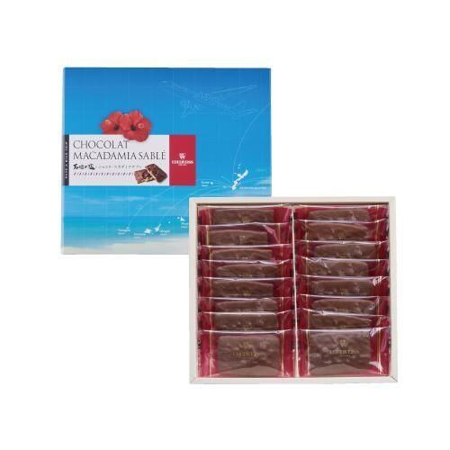 原材料名:チョコレート(国内製造)、小麦粉、バター、砂糖、マカダミアナッツ、アーモンド、卵、植物油脂、ショートニング、全粉乳、無糖練乳、食塩(沖縄県産)/乳化剤、ベーキングパウダー、香料、(一部に小麦・卵・乳成分・アーモンド・大豆・マカダミアナッツを含む)